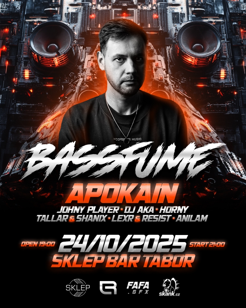 Ale Apokain rozhodně nebude sám – lineup je od začátku do konce nabitej. O Support celýho večera se postarají taky rodáčtí Johny Player, Horny, DJ AKA, Lexr & Resist, nebo Budějovický duo Tallar & Shanix, který už taky dobře známe..
