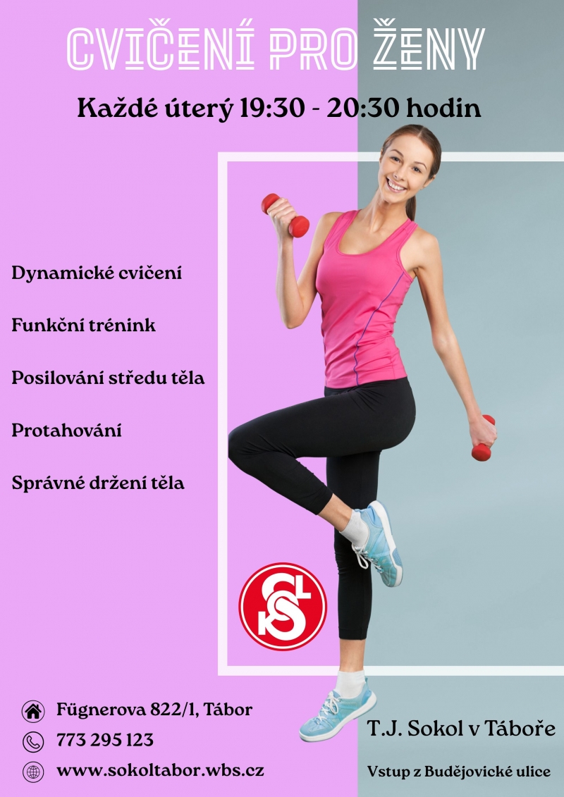 Přidáváme hodiny cvičení pro ženy v úterý 19:30-20:30 hodin.
