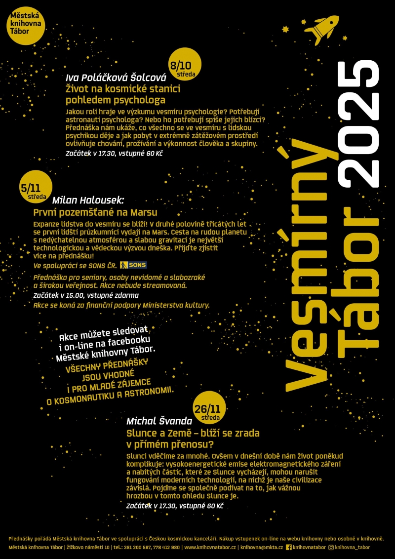 Přednášky pořádá Městská knihovna Tábor ve spolupráci s Českou kosmickou kanceláří.